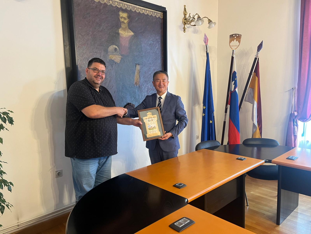 V znak pripravljenosti za sodelovanje je župan Občine Idrija od g. Chena Guangjuna prejel posebno plaketo.