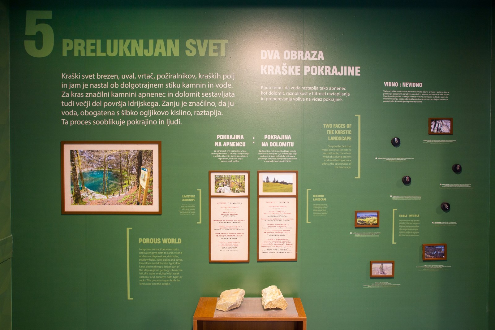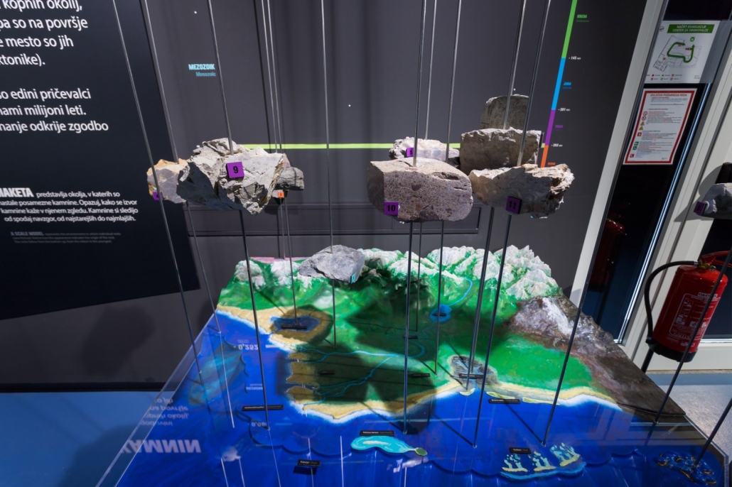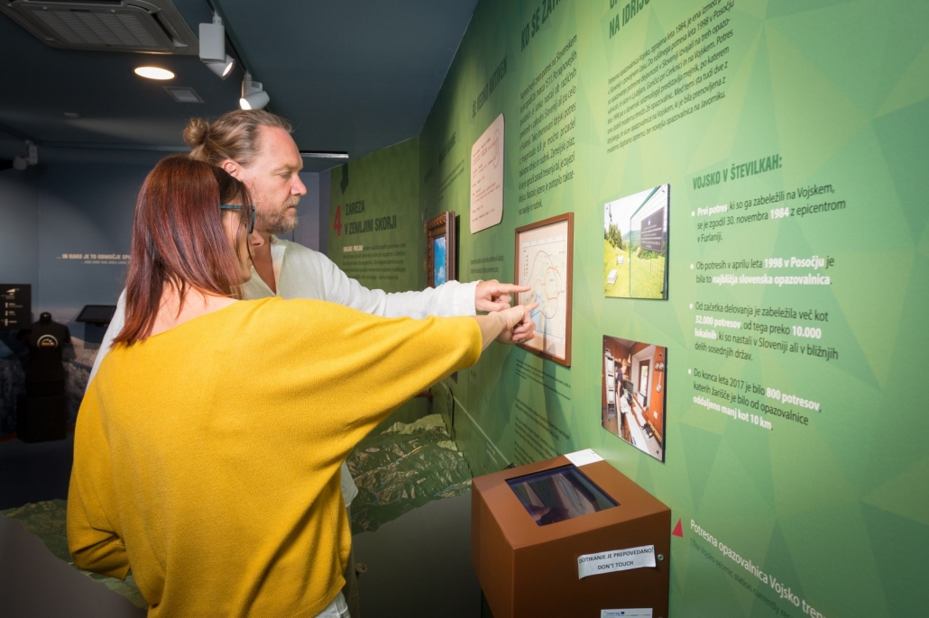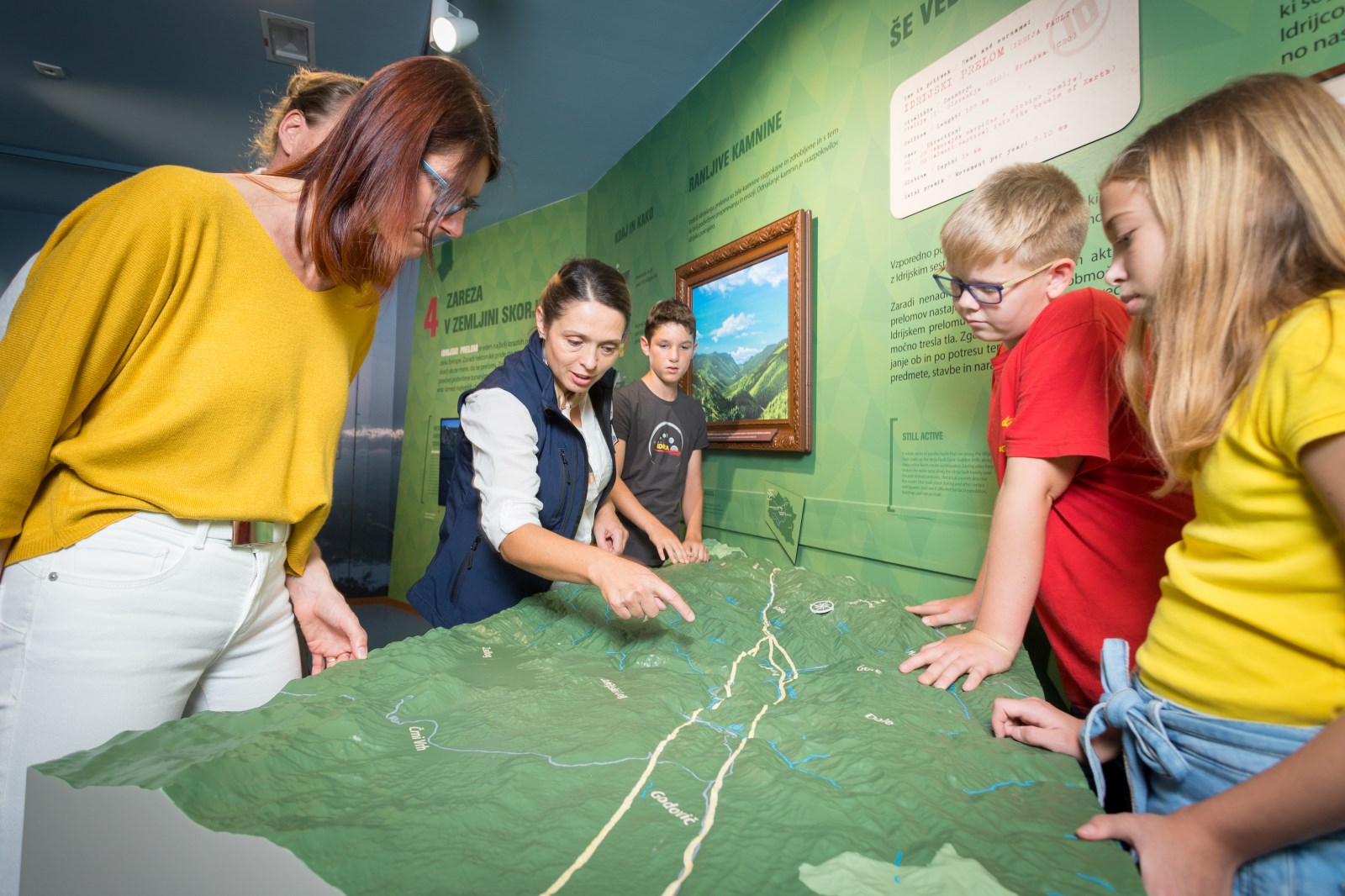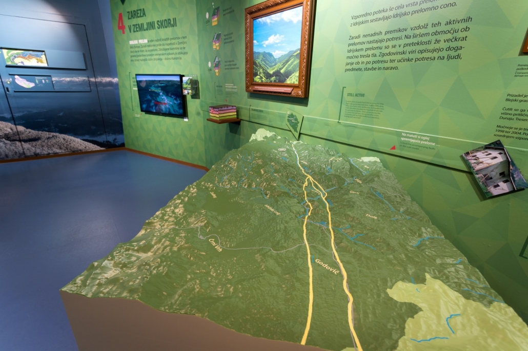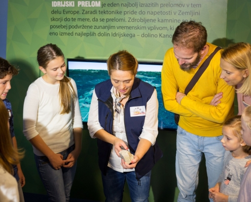 Interaktivna razstava Zapisano v kamninah s pomočjo maket, modelov, eksponatov, animacij in videopredstavitev predstavlja zgodbo o nastanku idrijskega območja. Vabljeni družine, posamezniki, skupine in šole, da se samostojno ali vodeno podate na popotovanje v geološko preteklost in spoznate, kaj si na Idrijskem velja ogledati v današnjem času.