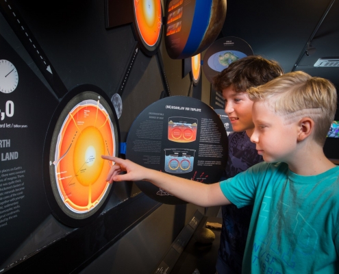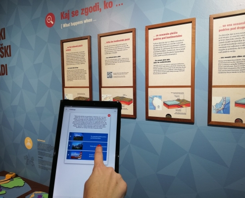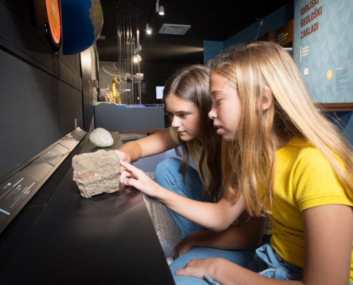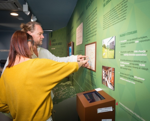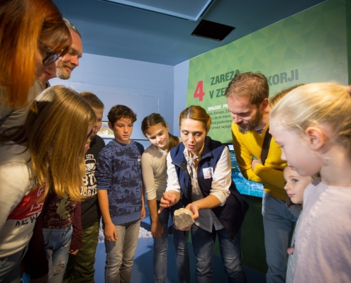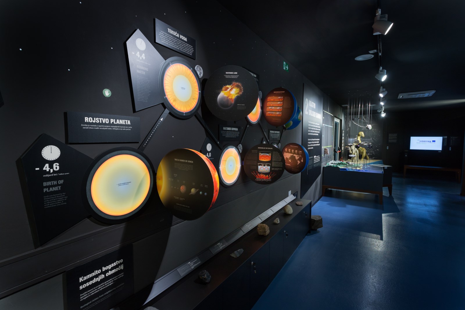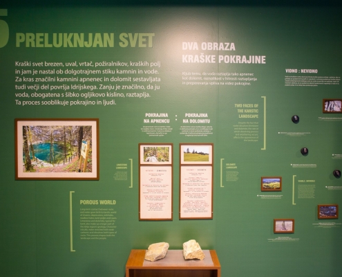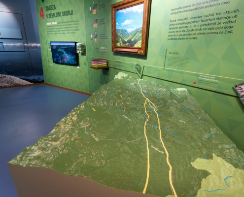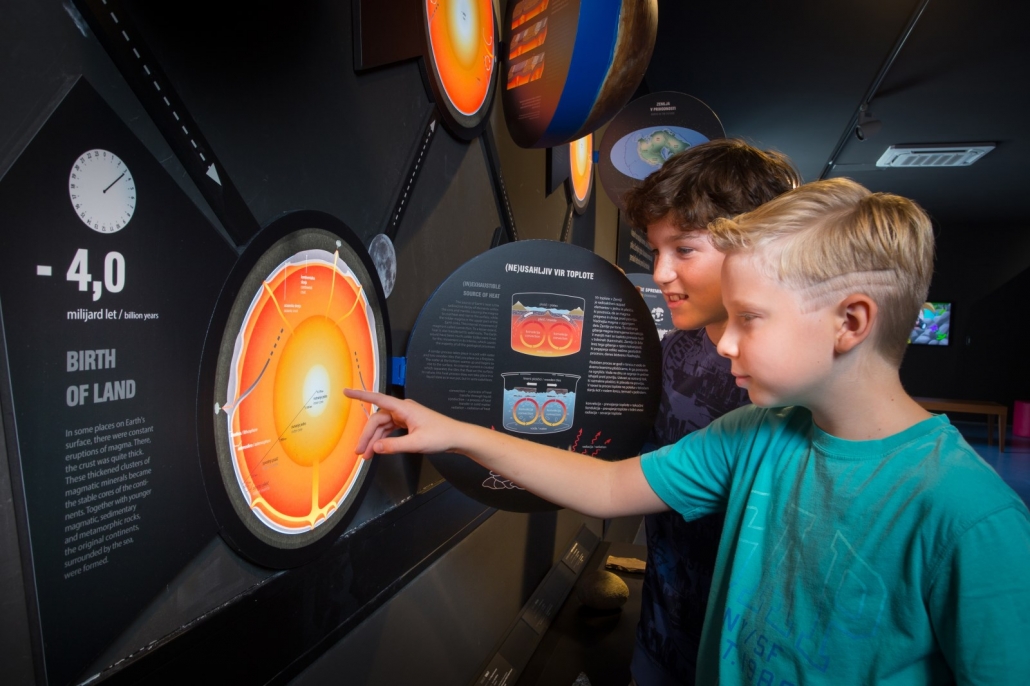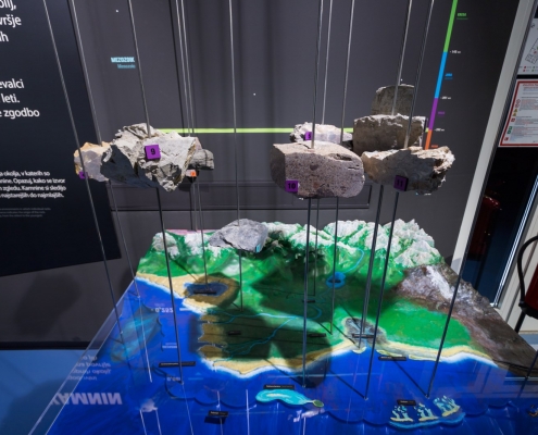 Interaktivna razstava Zapisano v kamninah s pomočjo maket, modelov, eksponatov, animacij in videopredstavitev predstavlja zgodbo o nastanku idrijskega območja. Vabljeni družine, posamezniki, skupine in šole, da se samostojno ali vodeno podate na popotovanje v geološko preteklost in spoznate, kaj si na Idrijskem velja ogledati v današnjem času.