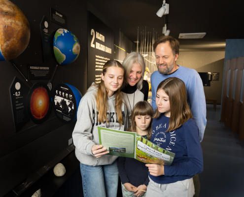 Čarobna pustolovščina z dinozavrico Zjalco je raziskovalni vodič, ki popelje družine in šole skozi razstavo Zapisano v kamninah. Skupaj z radovedno Zjalco ter njenima prijateljema, Živo in Tončkom, boste odkrivali skrivnosti geološke preteklosti. Občudovali boste razstavljene kamnine in fosile, raziskovali bogato živalstvo in rastlinstvo, spoznavali kraški svet ter odkrivali kulturne zaklade Idrije in njenega podeželja.