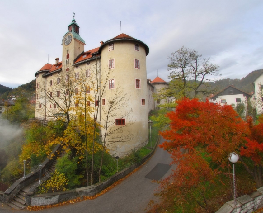 Passing the building of the first Slovenian non-classical secondary school (the Jurij Vega Secondary School), you reach the Gewerkenegg Castle, which served as the administrative building of the Idrija mine and for storing mercury. Today, it is home to the Idrija Municipal Museum, where visitors can relive the remarkable 500-year history of the town and the mercury mine, and learn about the history and beauty of Idrija’s handmade bobbin lace.