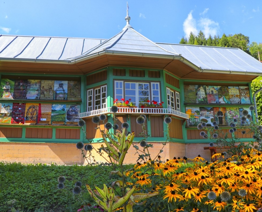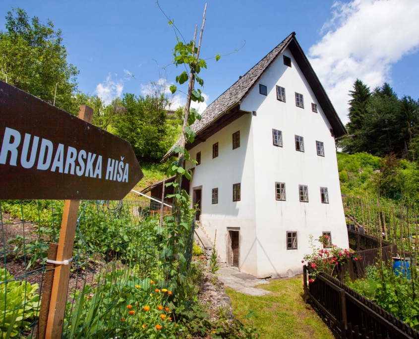 Trail description: Start your tour of Idrija at the Idrija Tourist Information Centre (Address: Prelovčeva ulica 5), where you can see the exhibition in the Idrija Geopark Visitor Centre. From here, follow Prelovčeva Street towards the Lace School. Pass the building, turn left up the hill in the direction of the Psychiatric Hospital and keep left at the crossroad. You will see the Church of the Holy Trinity to the right. The road to the left will lead you to the Jurij Vega Secondary School. Below the building, turn left and go down the stairs to the road below the castle, which leads downhill. When you reach the Tourist Information Centre again, turn right onto Kosovelova Street and continue straight ahead until you reach the entrance to Anthony’s Main Road on your right. Turn left into St. Ahacius Square. On your right, you will see the yellow building of the Miners’ Theatre. Continue straight ahead, through the underpass of the “magazin” building and up the stairs to the Town Square. Cross the square and then turn right along the main road. At the building with the NLB sign, turn left into Rožna Street and continue straight ahead. When you reach the monument on Aumetz Square, turn left up the hill onto Bazoviška Street, where you will soon see the old Miner’s House on your right.