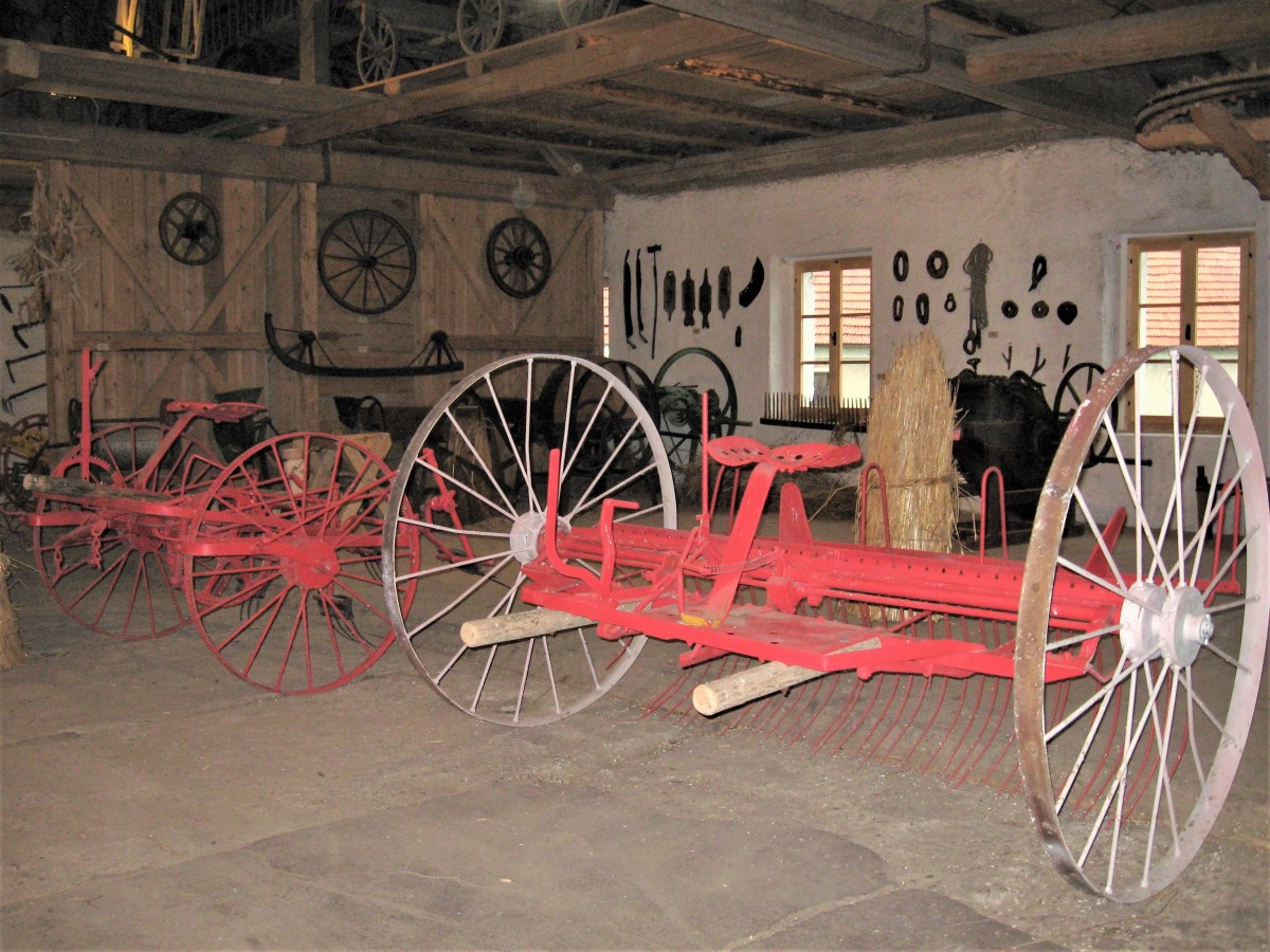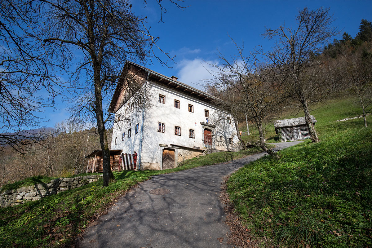 The gravel road will lead you further uphill. Once you reach a wide meadow, cross it and reach the first houses at the village of Pečnik. At the first crossing between the houses, take a left turn and follow the road to the next crossing, where you take a right turn toward the village of Ledine. By prior arrangement, you can take a tour of a rich museum collection of farming tools and machines at the Pr’ Jureč agrotourism (Ledine 19).