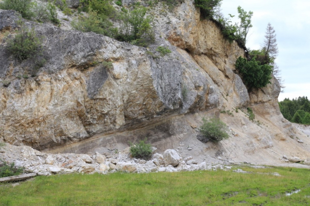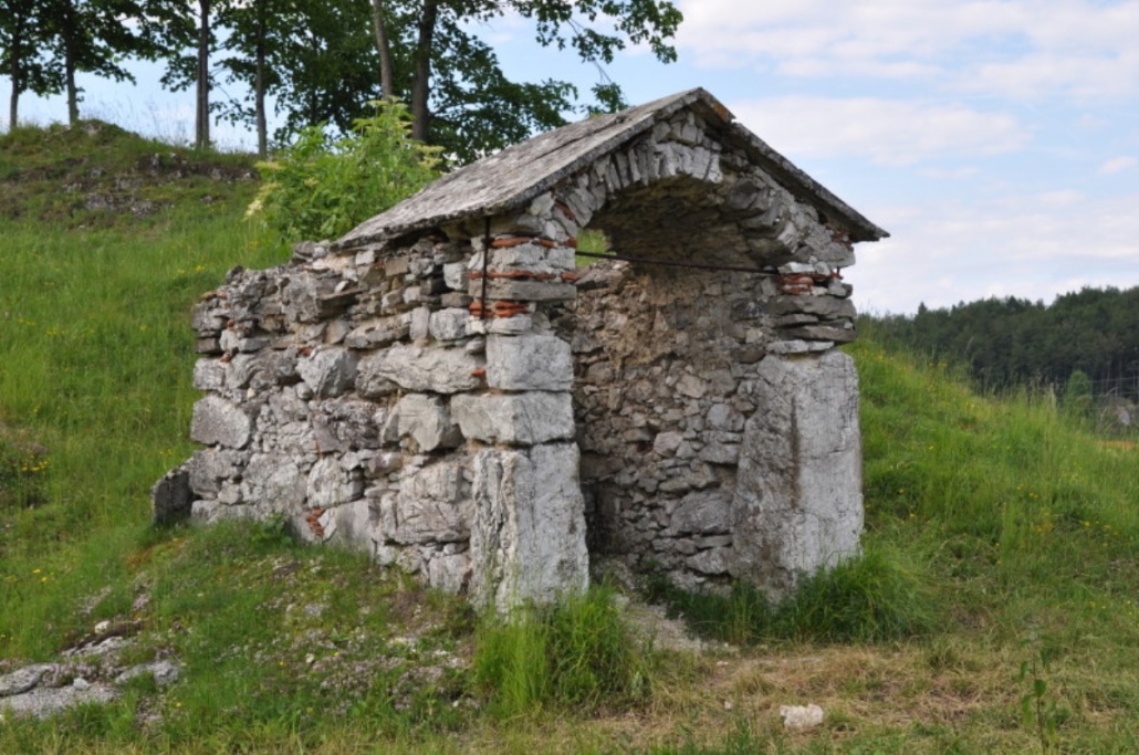 Trail description: From the Pr’ Mark farm head towards Zadlog. After a short ascent, the Zadlog Plateau with its endless meadows opens before you. A guide peg equipped with a QR code (via which you can access web content on your mobile phone) will guide you to your right on the first crossroads. After 700 m, you will reach a crossroads and beyond the meadow you will see the remnants of the flax cave. Turn left onto a gravel road and continue until you reach a crossroads with an asphalt road where you turn right. The road will lead you past the once magnificent Ivanšek’s linden tree and the Ivanšek’s pool to the crossroads with the Zadlog–Idrijski Log road, where you turn left. After 400 m, turn right at the first crossroads and left at the second one: you will reach the main road going through Zadlog. After a good 300 m drive, a guide peg will again steer you to your right, past a farm and onto a gravel road. The road that winds between the fields and meadows will soon lead you to a chapel and soon after to Tominc homestead. In the crossroads, turn right in the direction of a sandpit, and along the road, you will see a memorial plaque for Dr Frančišek Lampe and, a little later, Lampe chapel, where you turn left. After 500 m, turn left onto a local road and follow it in the direction of Črni Vrh until you reach a signpost for Štefk sinkholes and Špičasti vrh. Here, turn right onto a gravel road and follow it until your reach and asphalt crossroads, where you turn left, and then, after a few meters only, right. Cycle past houses and onto the main road through Zadlog, where you continue right towards Črni Vrh. A few hundred meters before your starting point, the road forks right and goes uphill towards a quarry where the tectonic contact between two thrusts is visible to the eye. Return to the main road. If you cycle a few meters from the starting point, the Pr’ Mark farm, you can visit Ivan Rudolf’s War Museum (Črni Vrh 36).
