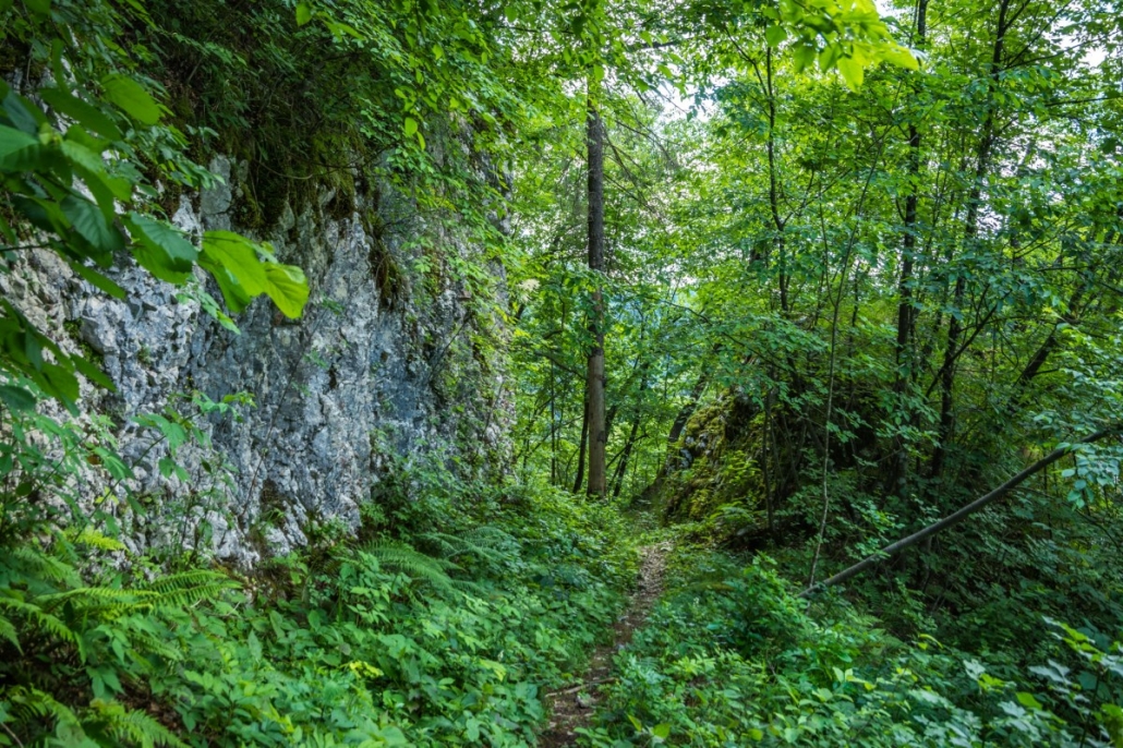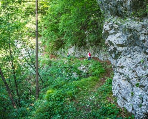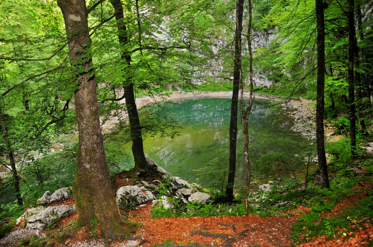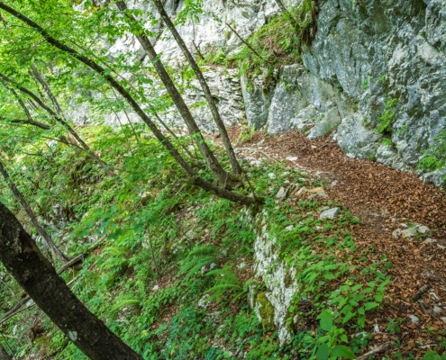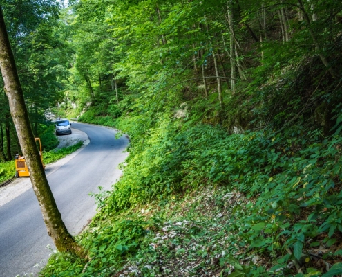 Reaching the starting point: From the direction of Ljubljana drive towards Idrija. When you pass Godovič, you will descend down a winding road through the Zala Valley. Towards the end of the valley, you will see the first cultivated meadow on your right with the Kolektor CPG company building on your right and a timber storage on your left. After the very next turn, there is a crossroads: take a left turn towards Idrijska Bela and the Wild Lake. Park your car approximately 0.5 km further on, at the Wild Lake parking.