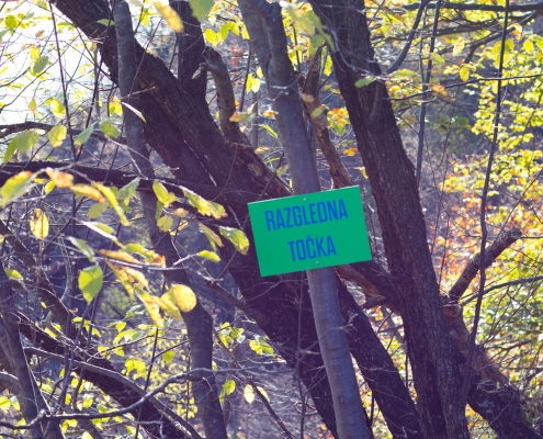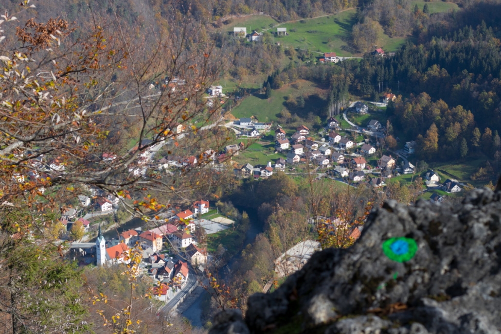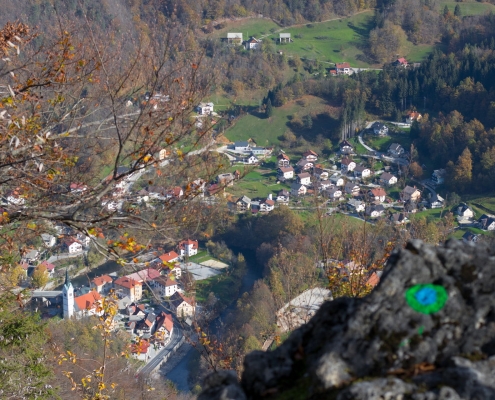 Reaching the starting point: From Ljubljana, take the road to Idrija. When you reach Idrija, take a right turn at the third crossing with traffic lights toward Spodnja Idrija (4 km). At the beginning of Spodnja Idrija, before the bridge that crosses the Idrijca River (next to the store) take a right turn and park at the parking lot next to the Spodnja Idrija House of Culture. You can also cross the bridge, take a right turn right after the bridge, and park in a smaller parking lot next to the main road.