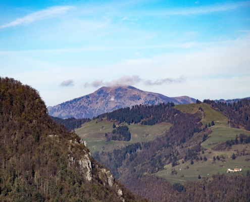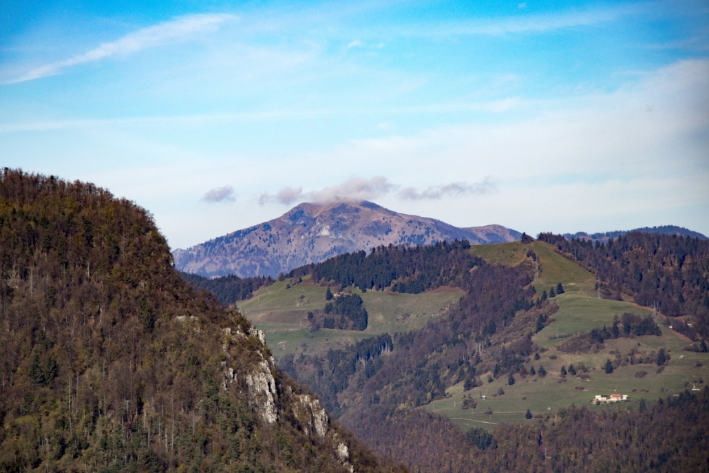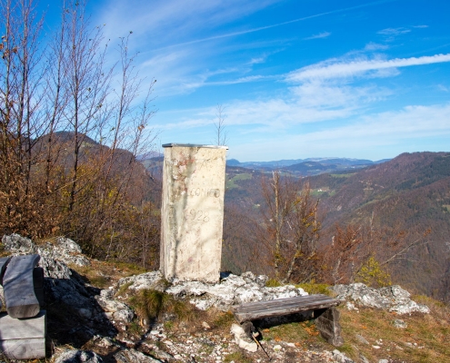 Cerkovni Vrh is a hill above Spodnja Idrija that you can access from multiple directions (Idrija, Spodnja Idrija, Kanomlja). From the top, you can see other local peaks such as Kobalove Planine, Jelenk, Kendov Vrh, Hleviška Planina, or Špičasti Vrh, while further in the distance, you can clearly see Mt. Porezen, Golaki, and Kobla.