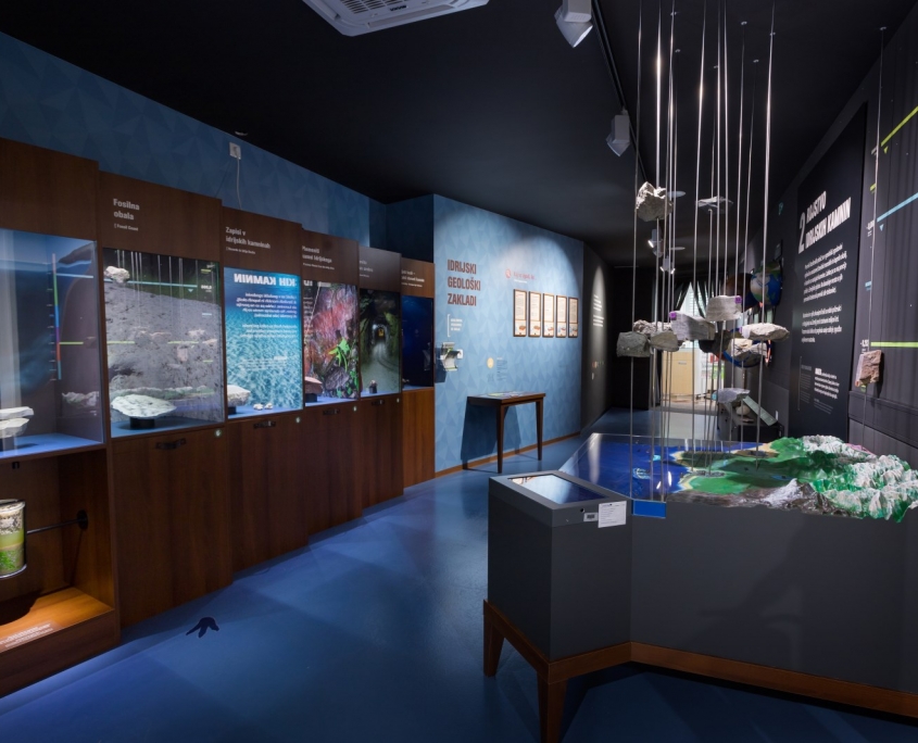 In addition to the geological past and processes that created our world, the exhibition Written in Rocks features rocks and fossils, the geopark’s flora and fauna, the karst world with its phenomena, the cultural heritage of Idrija, and its picturesque countryside. The exhibition is centered around the tectonic processes and the important role they played in forming this area with its famous mercury deposit. These processes – the most important being the Idrija Fault – had an important effect on nature, rocks, soil, landscape and consequently the history and way of life, even the character of the local population.