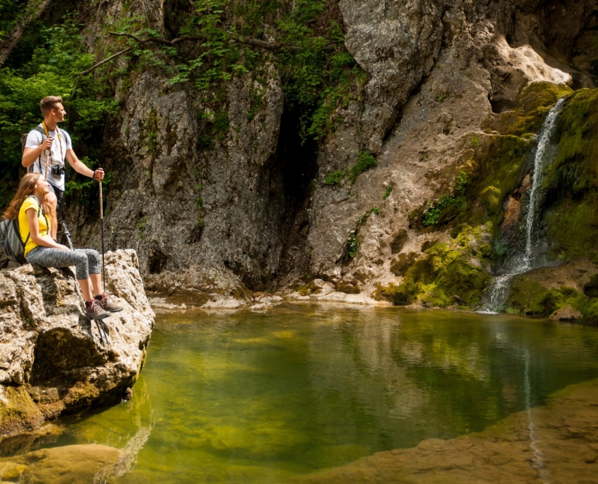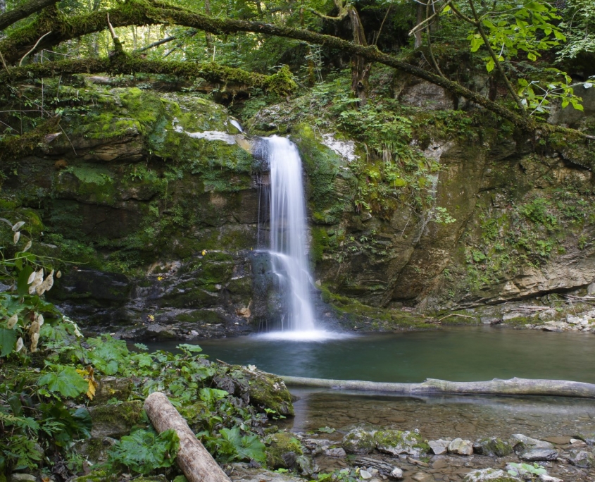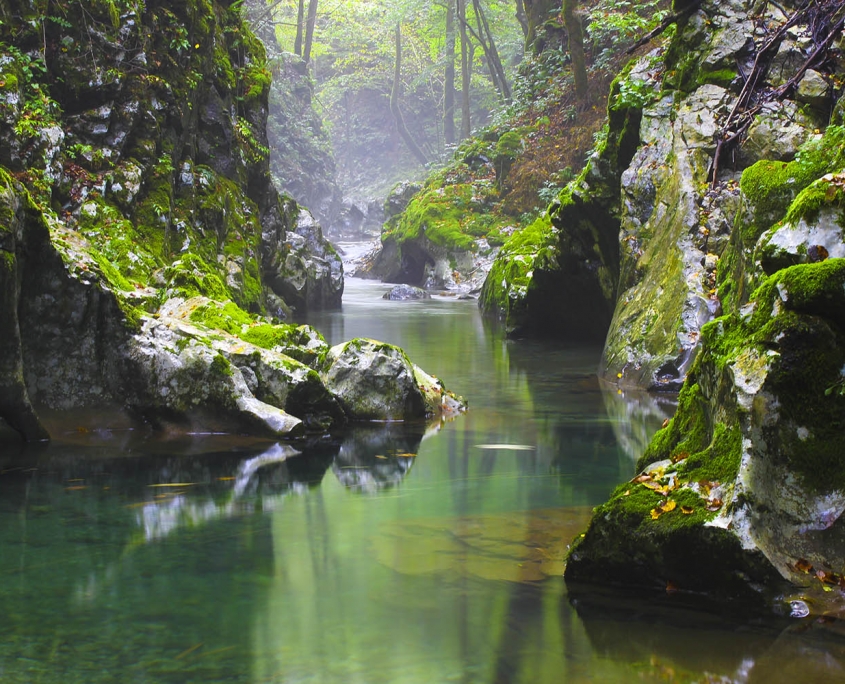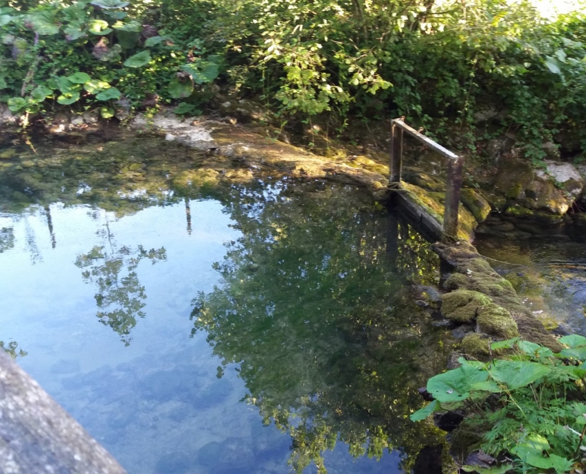 The Wild Lake is one of the most fascinating karst springs in Slovenia as it is both a spring as well as a lake and cave, all in one. It is situated in the beginning of the Strug gorge, under the cliff-like slopes of the Črni Vrh Plateau, which represents the larger part of the spring’s background area. The majestic, almost 100 m high slopes are made of Lower Cretacious limestones (with an age of 145–100 million years) on an impermeable basis of Paleocene-Eocene flysch rocks (66–34 million years), the youngest rocks in the Idrija region.