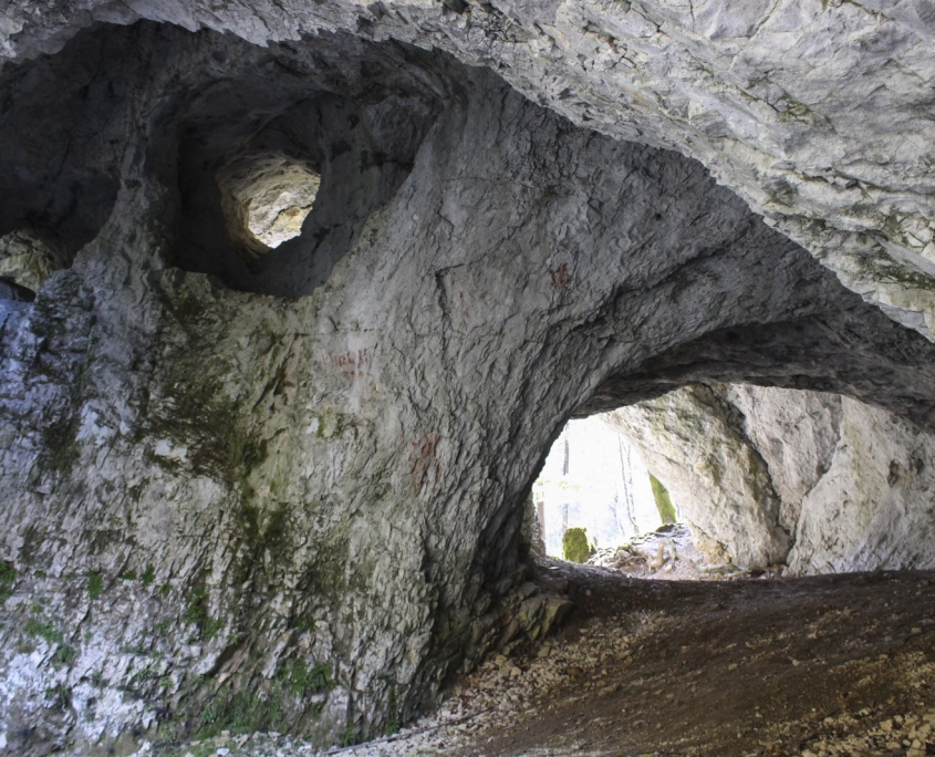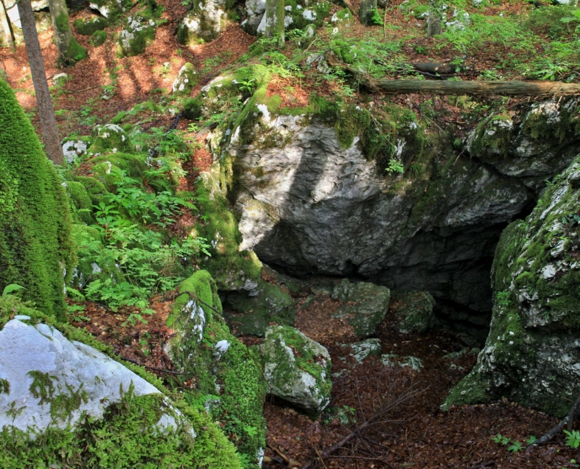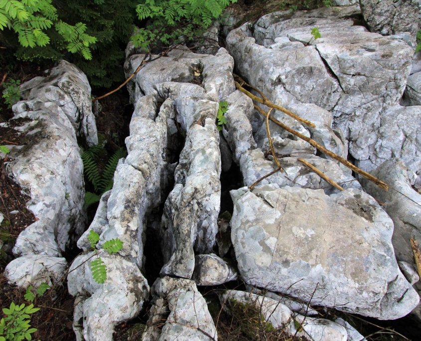 The karst world of chasms, depressions, sinkholes, swallow holes, karst fields, and caves was formed through water washing over the rocks for long periods of time. Limestone and dolomite that are typical for karst also form a large part of the Idrija region. These rocks are soluble in water – a process that helps shape the landscape and its inhabitants.