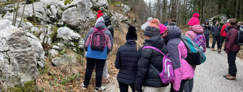 Druga skupina pa se je odpravila na učno pot Kraški gozd s pomočjo aplikacije TurfHunt. Tam so raziskovali površinske in podzemne skrivnosti kraškega sveta, prepoznavali tipične kamnine s fosili ter spoznavali značilnosti gozdnega ekosistema.