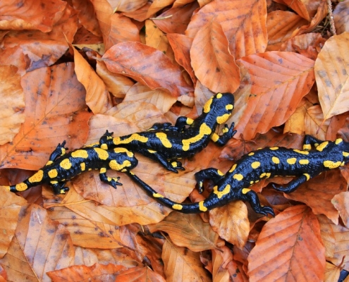 Od hroščev najdemo v geoparku več varovanih in kvalifikacijskih vrst Natura 2000, kot so bukov kozliček, alpski kozliček, rogač in močvirski krešič. Omenjene vrste za svoje razmnoževanje potrebujejo naravne gozdove z zadostno količino trohnečega lesa listavcev. Med dvoživkami prevladujejo hribski urh, veliki, robati in planinski pupek, navadna in zelena krastača ter navadni močerad.