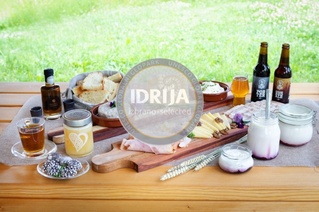 • izvor surovin oz. postopkov izdelave izdelkov oz. izvedbe storitev mora biti vsaj 50 % iz območja Geoparka Idrija oz. 100 % iz območja Slovenije, razen, če živil za določene izdelke ni mogoče zagotoviti v Sloveniji,