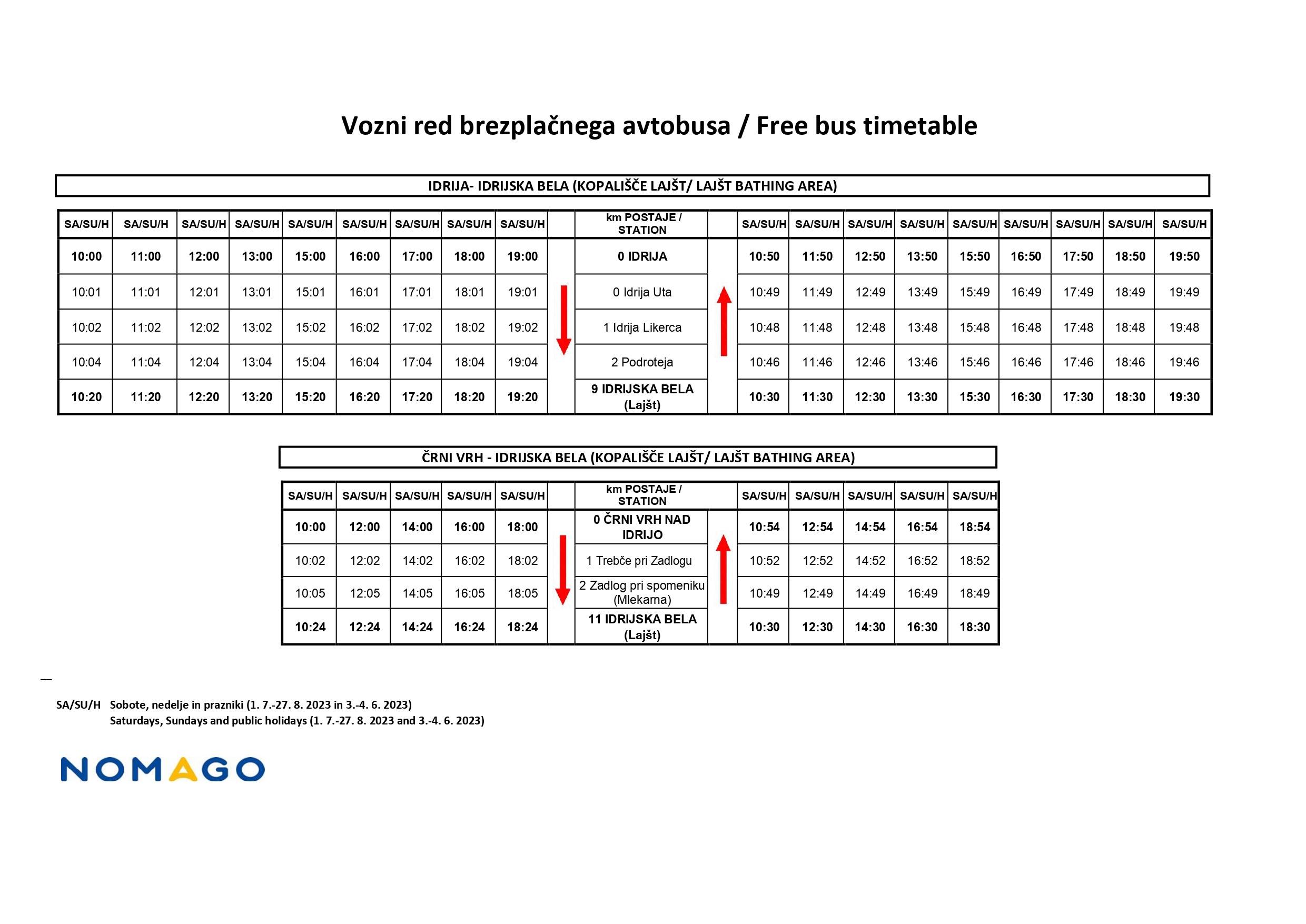 Avtobusni prevoz iz Idrije v Idrijsko Belo s posebnim avtobusom in nazaj z rednim avtobusom je za udeležence pohoda brezplačen. Vozni red avtobusnega prevoza iz Idrije in Črnega Vrha je v prilogi.